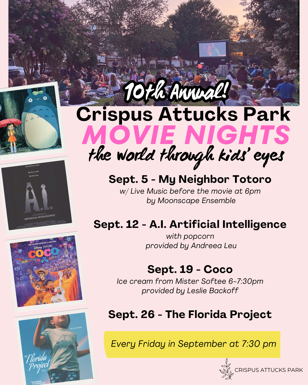 For the TENTH year in a row, we are excited to bring our annual movie series back to the Park!